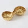 3 Section Server from our Mascali D’oro Collection. Perfect for a favorite combos of dips, sauces, chip, or fruit and vegetables. Striking and elegant gold-tone finished high-fired porcelain. Food safe, tarnish free, dishwasher safe, oven safe to 500. Easy Care.