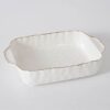 8″ x 8″ Square Baking Dish in Portofino. Impress with your culinary skill and presentation by serving up delicious entrees or pastries in this elegant dish. Beautifully crafted white porcelain with a delicate gold trim. Food safe, tarnish free, dishwasher safe, oven safe to 500°F. Easy Care. Capacity: 1.5 Qt