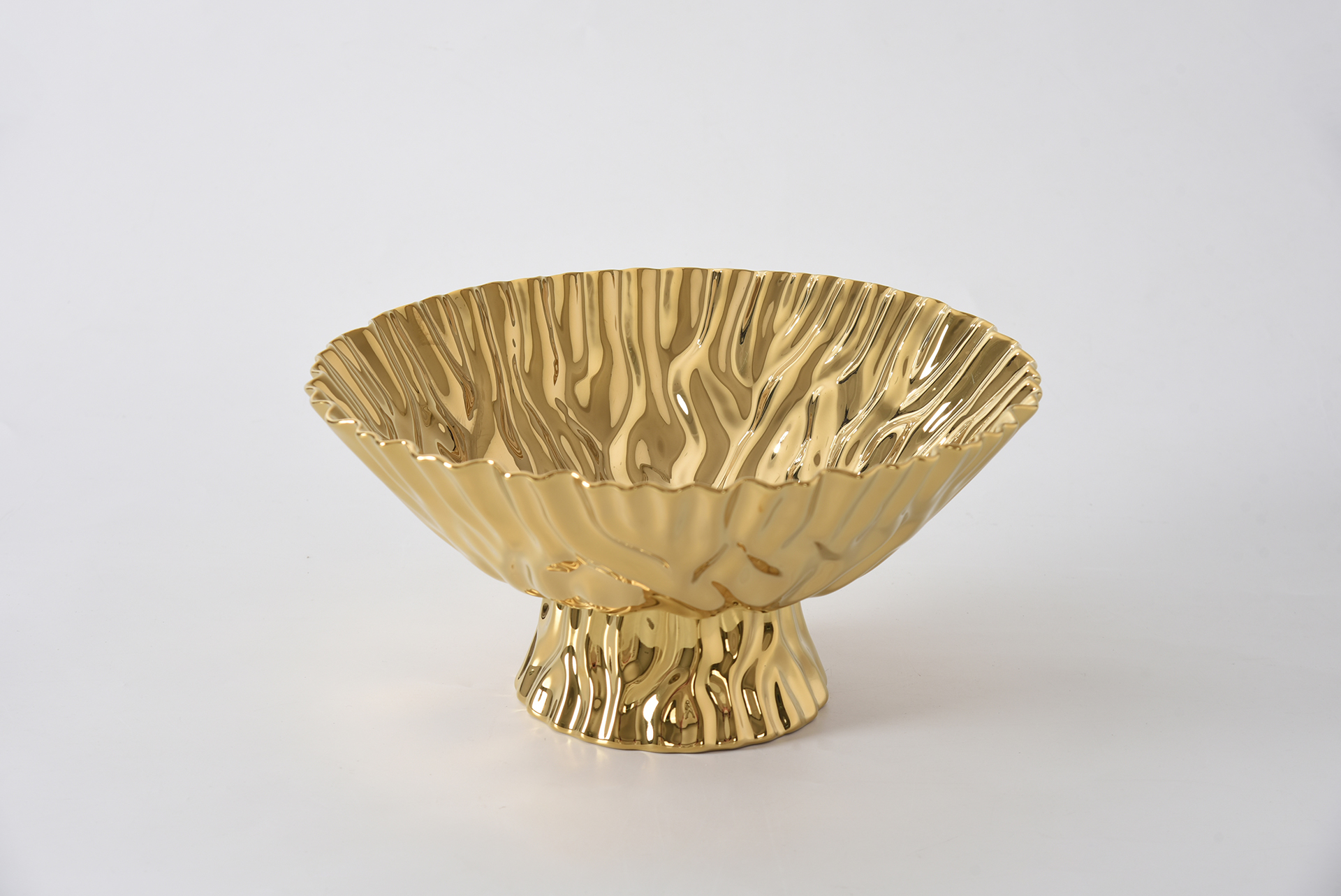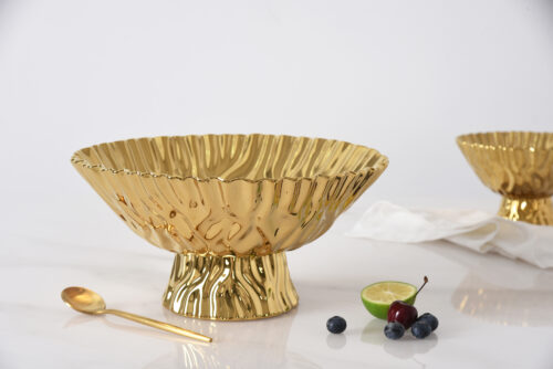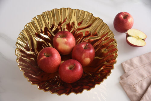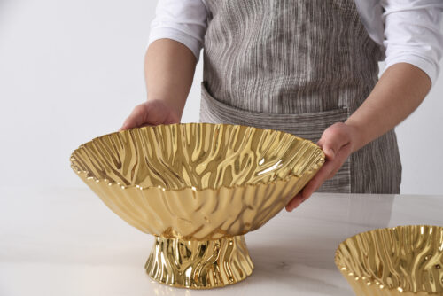Make a statement with the Mascali D’oro Large Footed Bowl – an exquisite centerpiece for fruit displays or decorative arrangements. Crafted from luminous gold-tone finished high-fired porcelain, it brings timeless elegance to any table. Food safe, tarnish free, dishwasher safe, oven safe to 500°F. Easy Care. It’s as practical as it is beautiful.