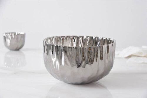 Medium Bowl in Mascali Argento. Perfectly sized for individual servings of pasta, salads, or chips, this bowl combines functionality with sophistication. Crafted from high-fired porcelain and finished with a luxurious silver-tone, it exudes elegance while being entirely practical. Food safe, tarnish-free, and easy to care for, this bowl is also dishwasher safe and oven friendly up to 500°F, making it a versatile addition to your serve ware collection.