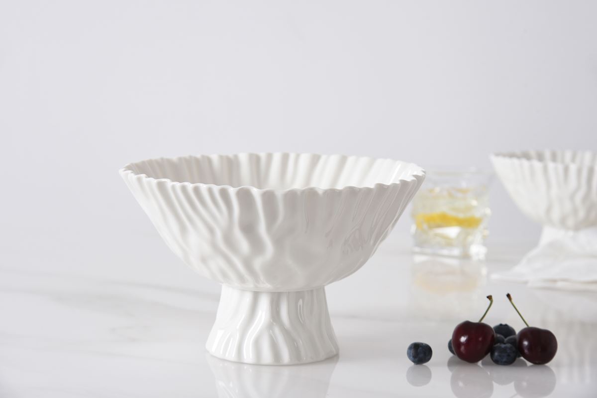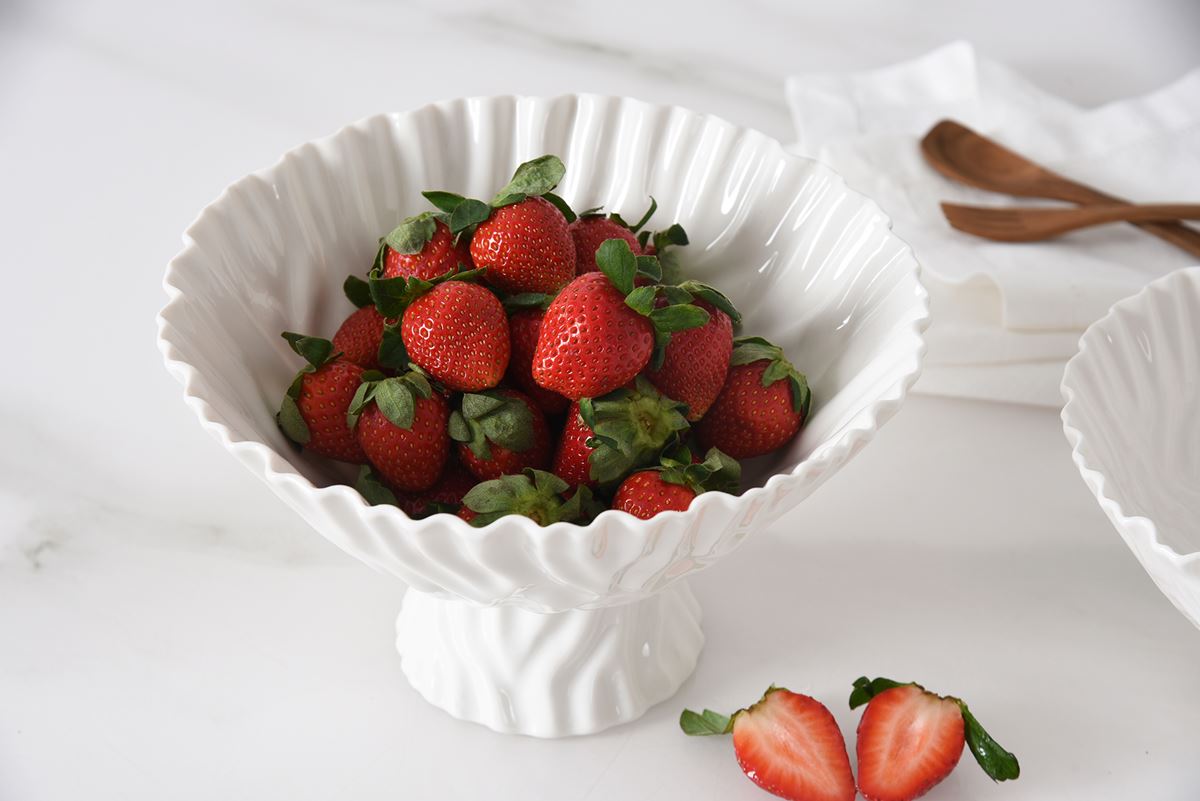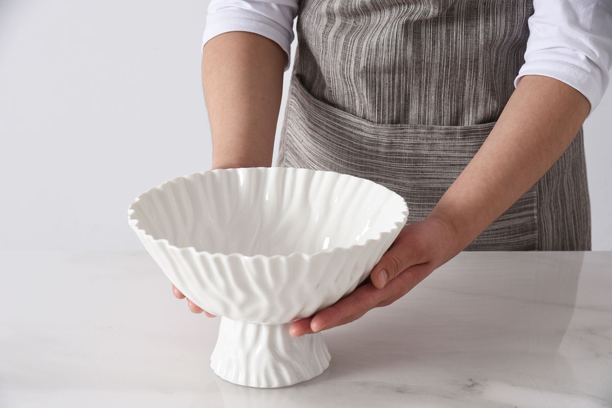Gracefully elevate your table with the Mascali Bianca Medium Footed Bowl. Whether filled with fresh fruit or styled as a centerpiece, its luminous white porcelain brings timeless sophistication to any setting. Versatile high-fired porcelain pieces that are microwave safe! Food safe, tarnish free, dishwasher safe, oven safe to 500°F. Easy Care.