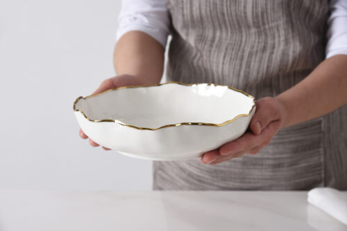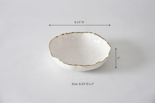 Elevate your table with this versatile Pasta Bowl from our Portofino Collection. Ideal for serving pasta, salads, soups, and more. Expertly crafted from luminous white porcelain and accented with a graceful gold trim, it brings timeless elegance to any meal. Designed for everyday ease – food safe, tarnish-resistant, dishwasher safe, and oven safe up to 500°F.