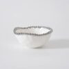 Serving Bowl in Salerno. Whether you are serving stuffed shells, roasted chicken breasts or grilled vegetables, your food will look more elegant in this serving bowl. Gleaming white porcelain with lustrous silver beads. Food safe, tarnish free, dishwasher safe, oven safe to 500°F. Easy Care.