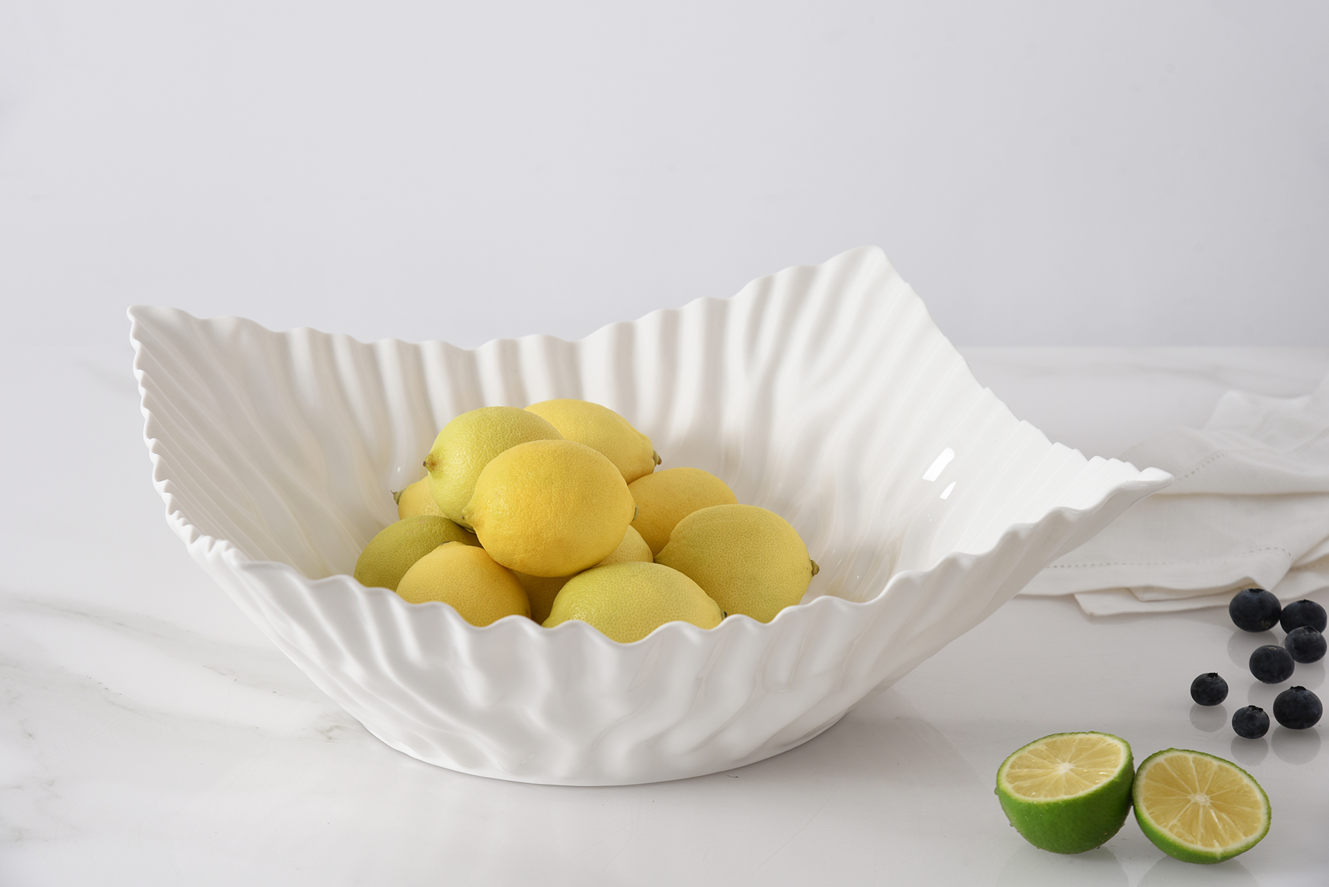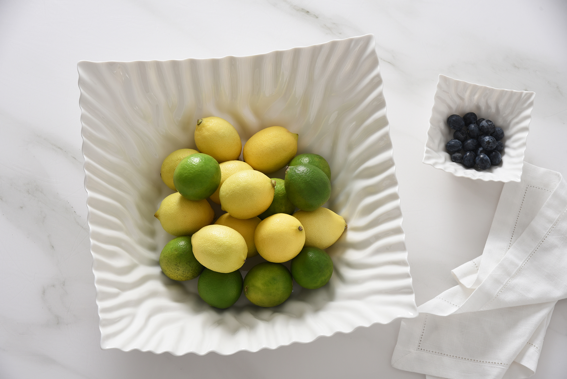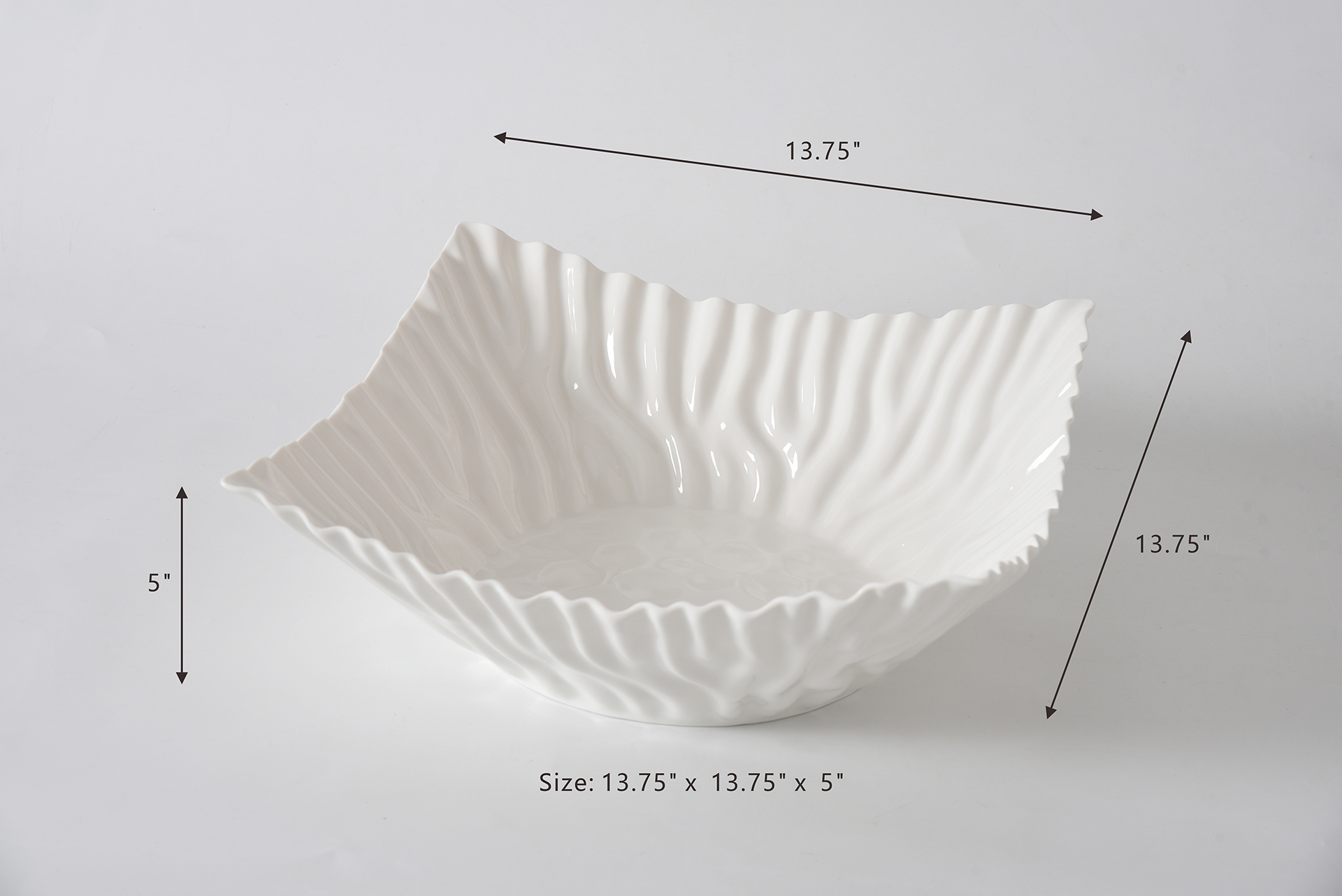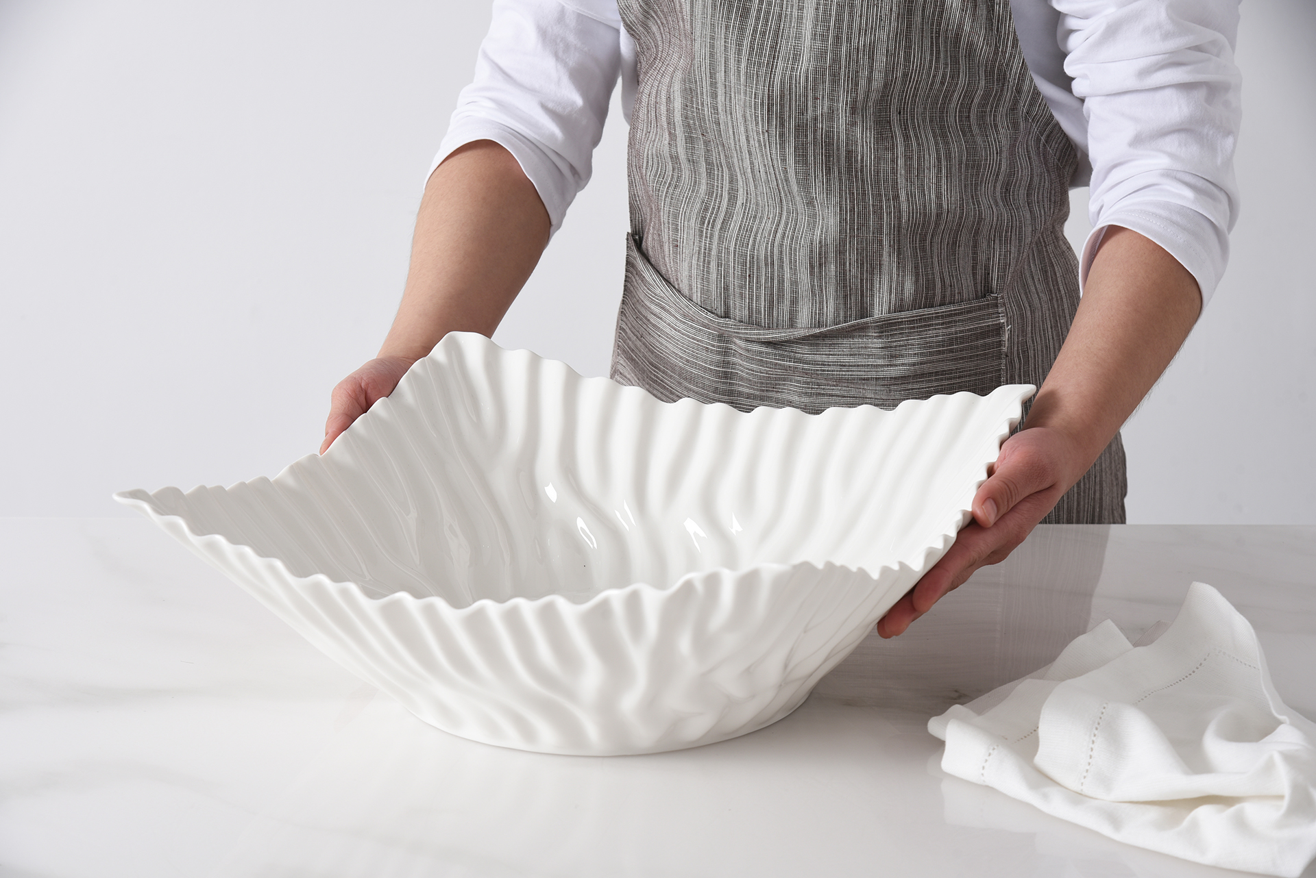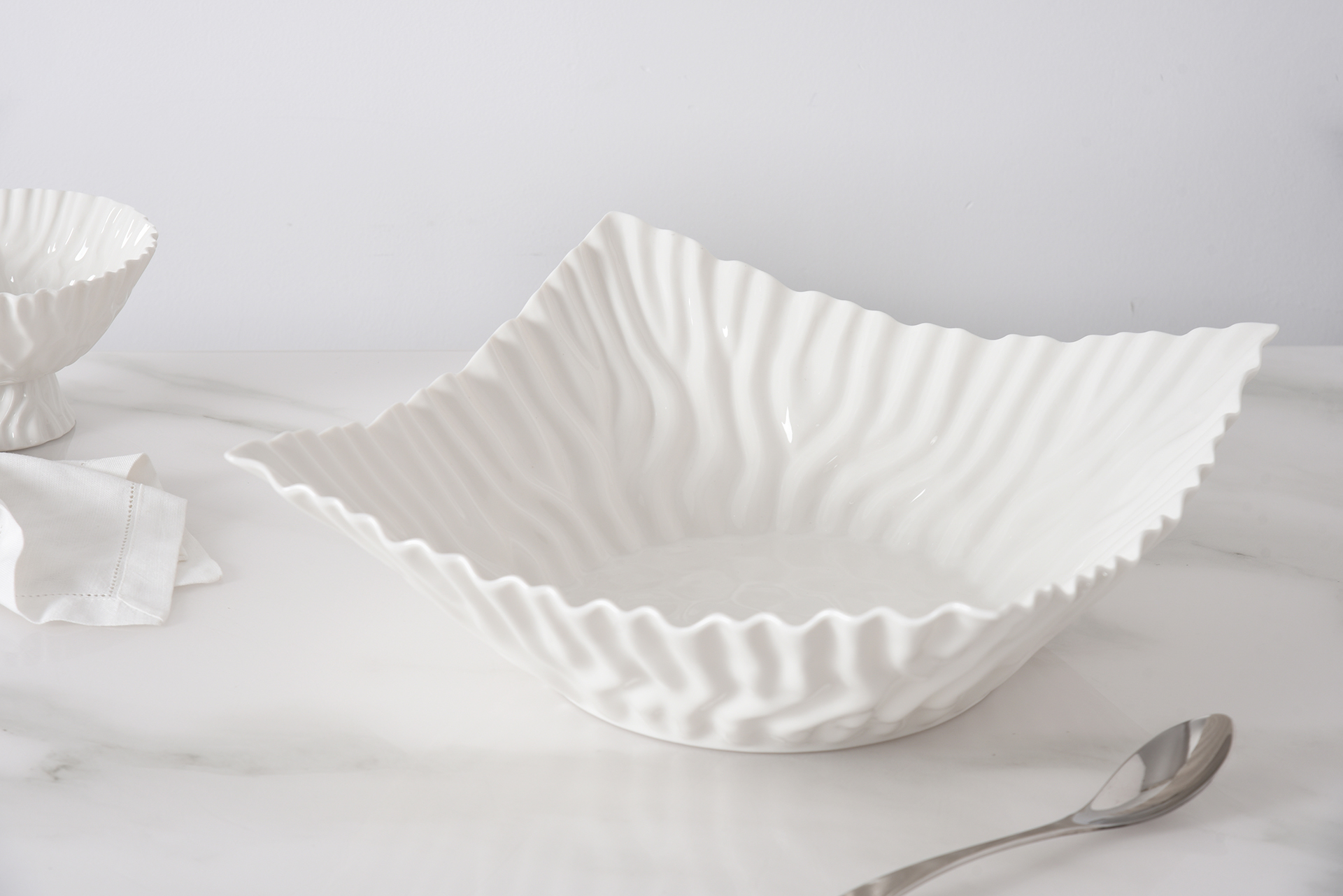 Square Centerpiece from Mascali Bianca. Perfect for a gorgeous table focal point or for serving main courses and large sides! This all-purpose piece makes an easy transition from oven to table. Versatile high-fired porcelain pieces that are microwave safe! Food safe, tarnish free, dishwasher safe, oven safe to 500°F. Easy Care.